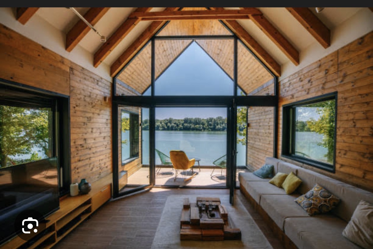 This 4-bed, 3.5-bath contemporary home features floor-to-ceiling windows, a chef's kitchen with Thermador appliances, and a primary suite with private balcony overlooking the lake.